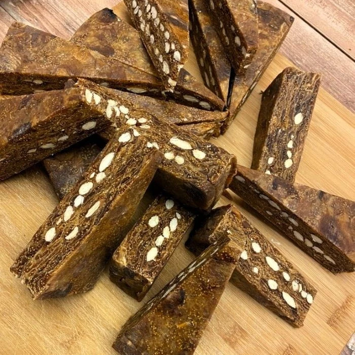 Tradycyjne hiszpańskie ciasto figowe z migdałami Paiarrop to naturalnie słodki deser o intensywnym smaku fig z dodatkiem migdałów.
