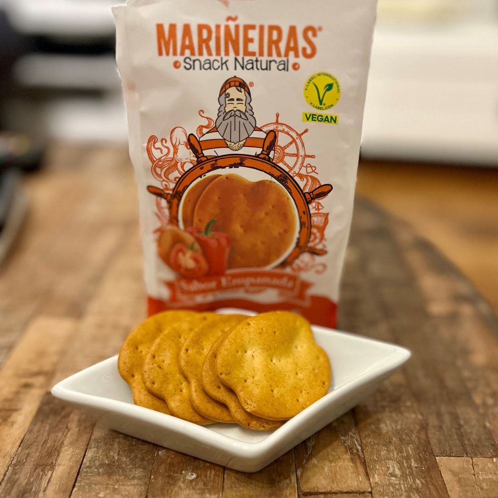 Mariñeiras Empanada Daveiga to tradycyjne hiszpańskie krakersy pieczywne pochodzące z Galicji, inspirowane dawnym suchym chlebem używanym przez marynarzy podczas długich rejsów.