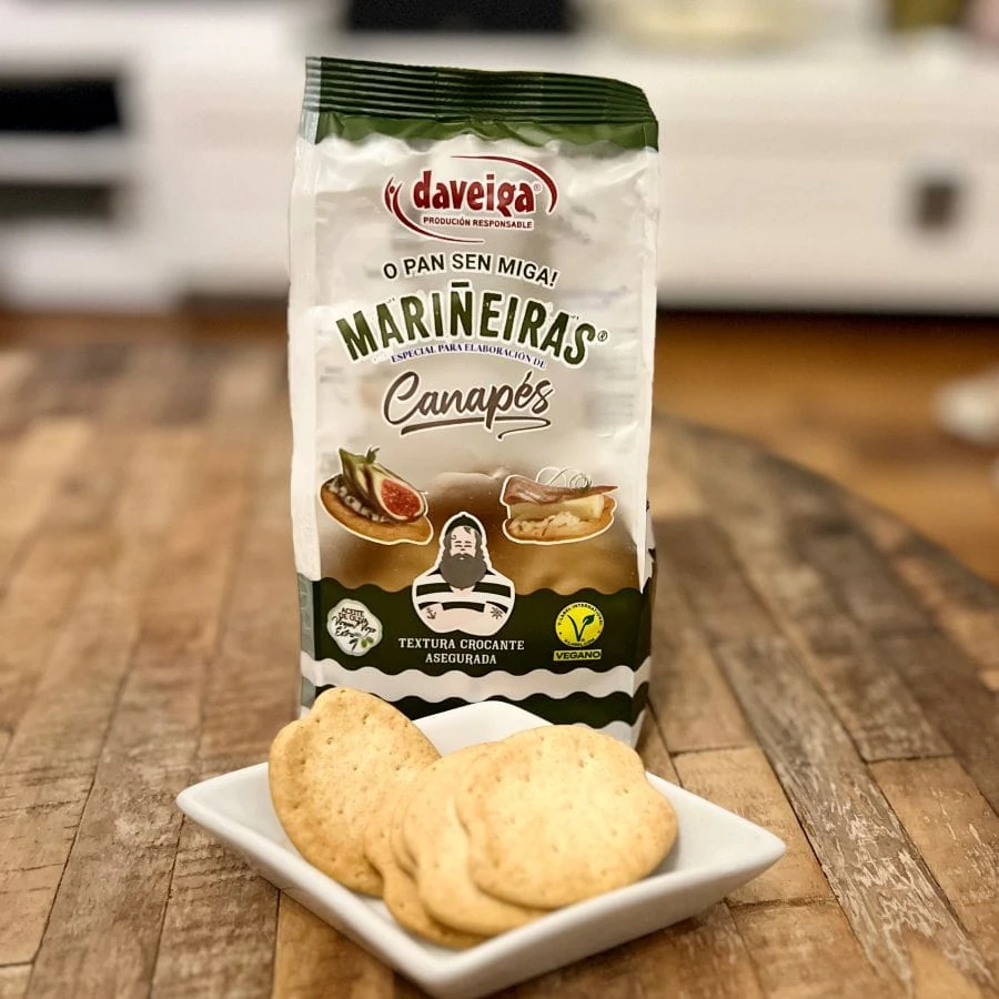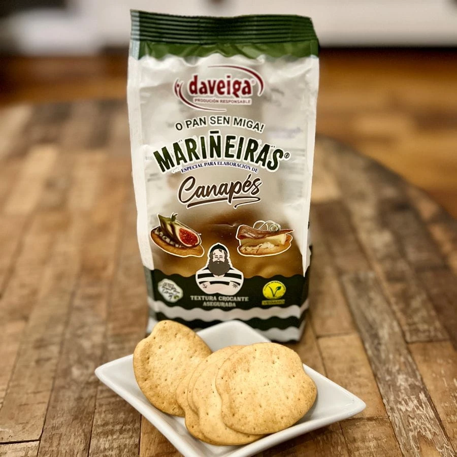 Mariñeiras z oliwą extra virgin Daveiga to tradycyjne galicyjskie krakersy pieczywne inspirowane suchym chlebem, który dawniej zabierali marynarze na długie rejsy.