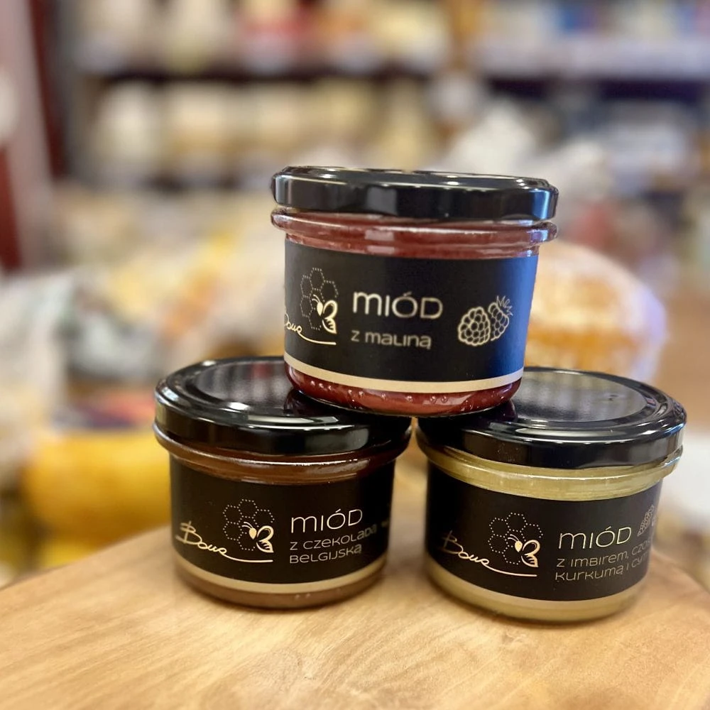Maliny wprowadzają przyjemną, delikatnie kwaskową nutę, która przełamuje naturalną słodycz miodu i tworzy harmonijną, owocową kompozycję. Dzięki temu miód jest lekki, aromatyczny i doskonale sprawdza się zarówno w codziennych śniadaniach, jak i deserach.