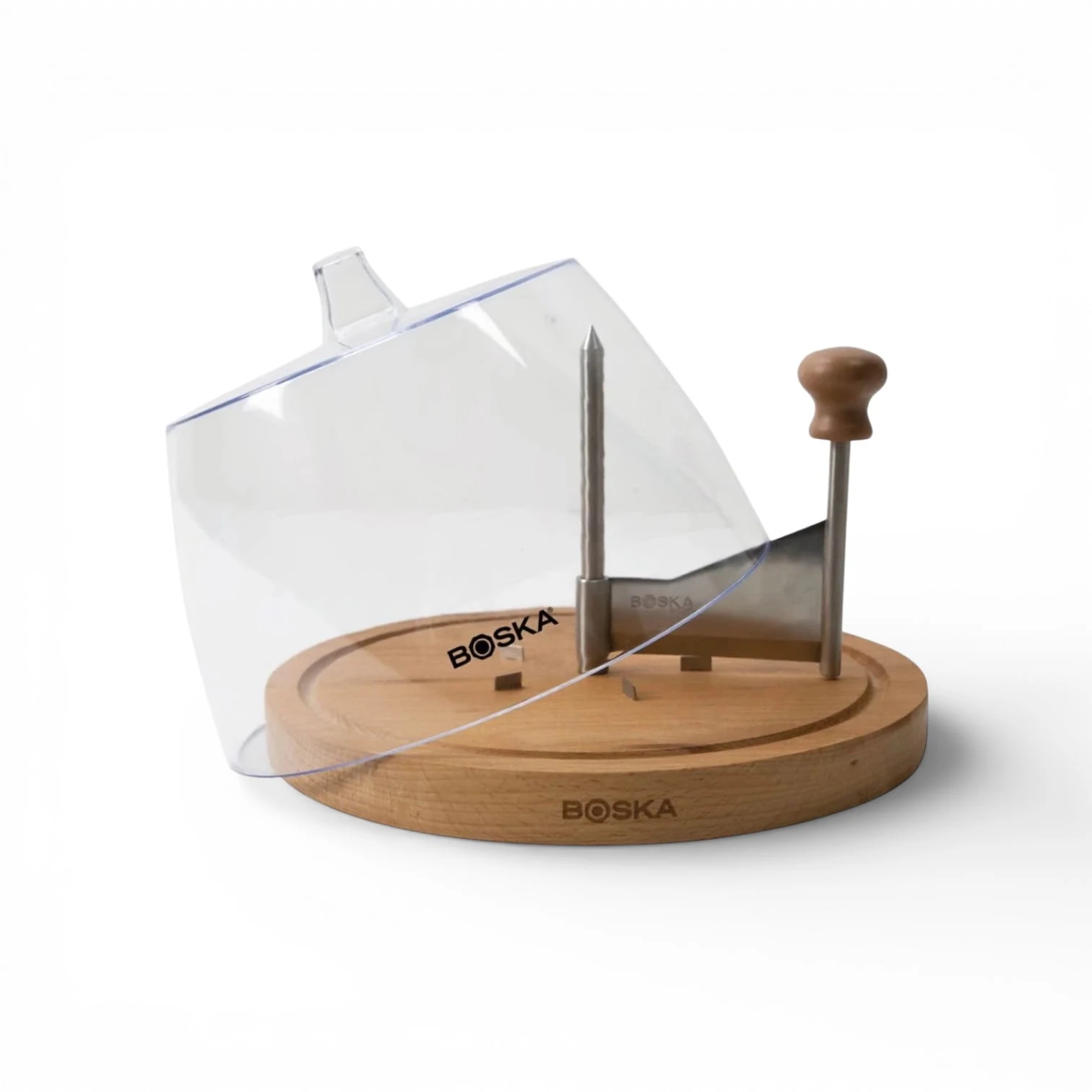 - przezroczystą kopułę ochronną (dome), która zabezpiecza ser i umożliwia estetyczne serwowanie bezpośrednio na stole.