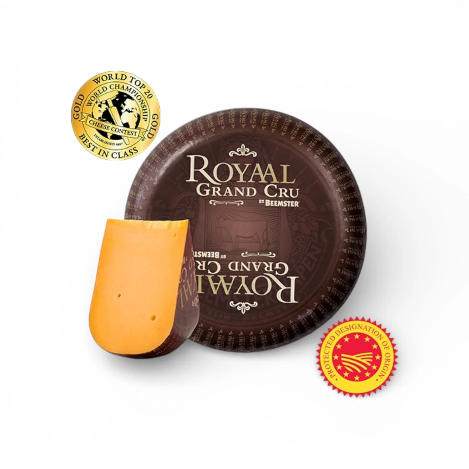 Beemster Royaal Grand Cru to ser długo dojrzewający, wytwarzany z najwyższej jakości mleka krów wypasanych na żyznych łąkach polderu Beemster.