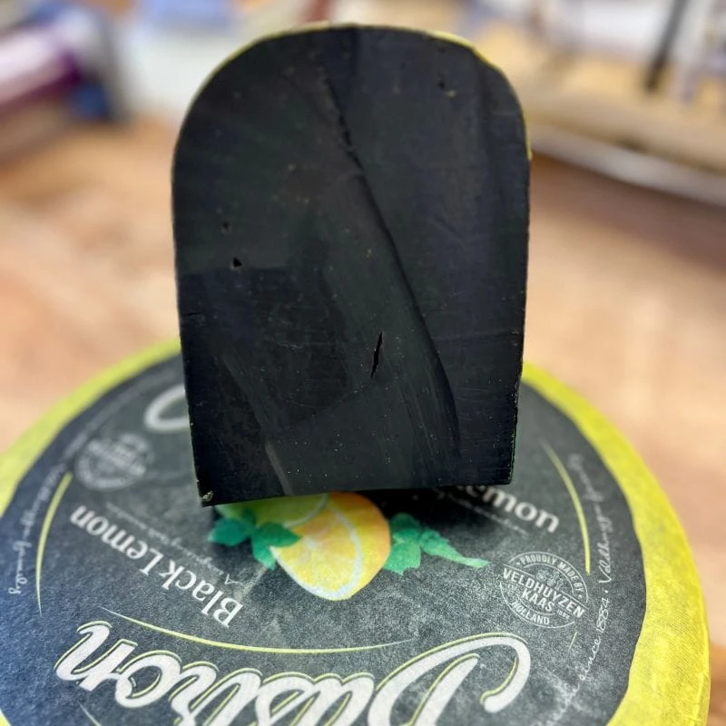 Wyjątkowa holenderska gouda z mleka krowiego o intensywnie czarnej barwie (barwionej węglem roślinnym), z orzeźwiającymi nutami cytryny i limonki oraz subtelną, charakterystyczną lukrecją.