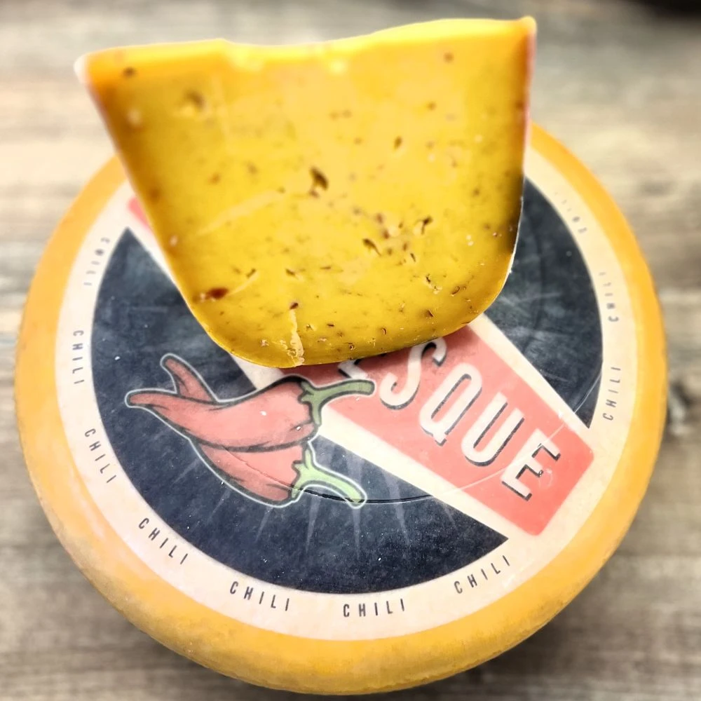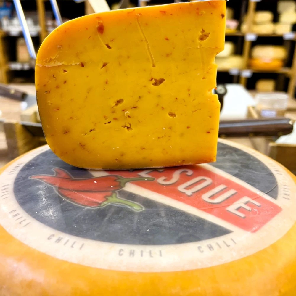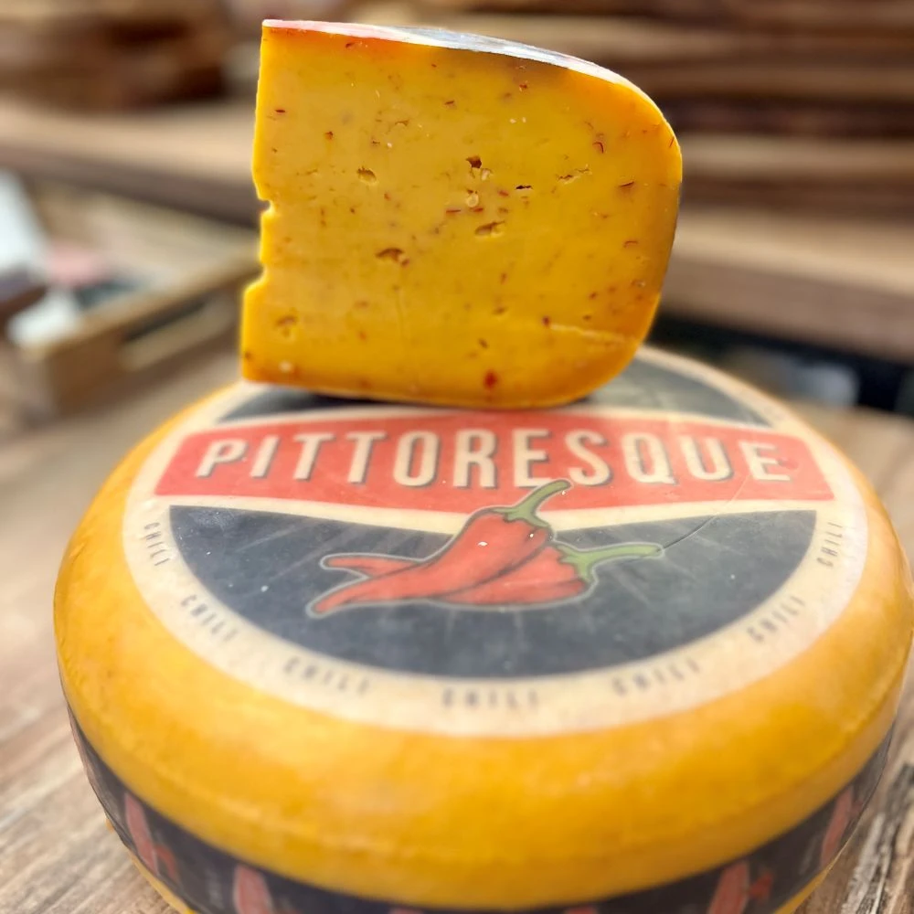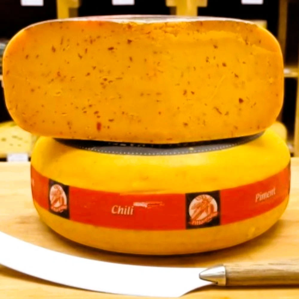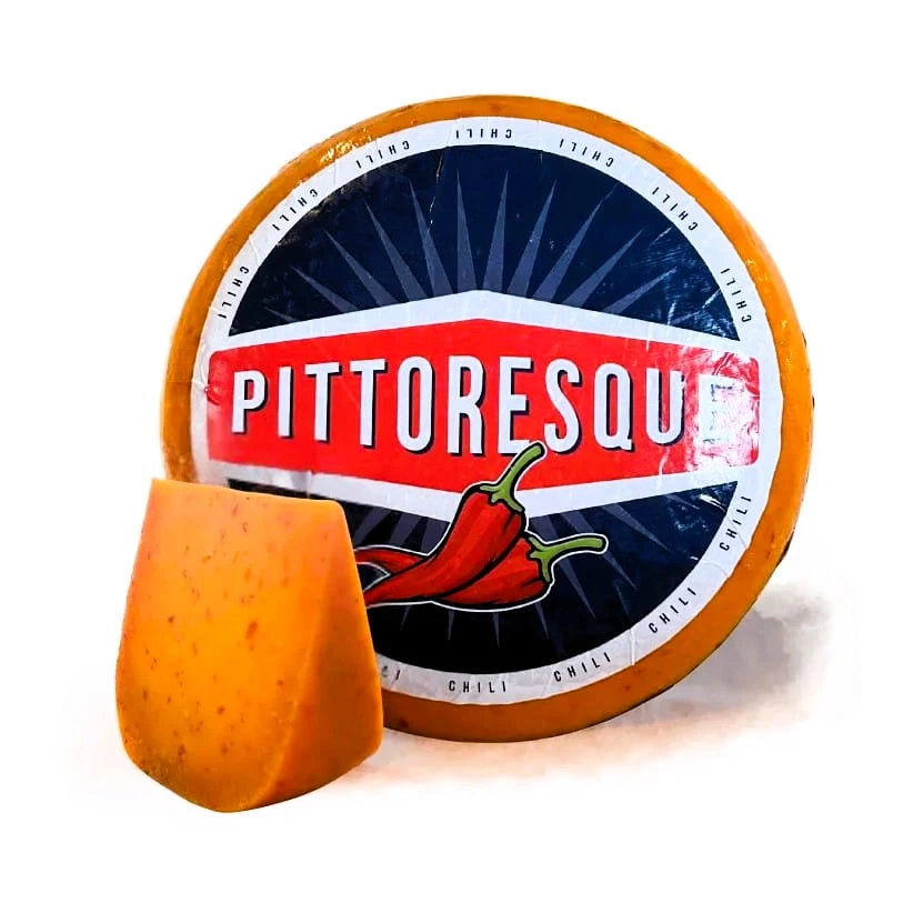 Gouda Pittoresque z chili to aromatyczny ser dojrzewający, w którym klasyczna, łagodnie maślana baza holenderskiej goudy została wzbogacona dodatkiem papryczek chili.