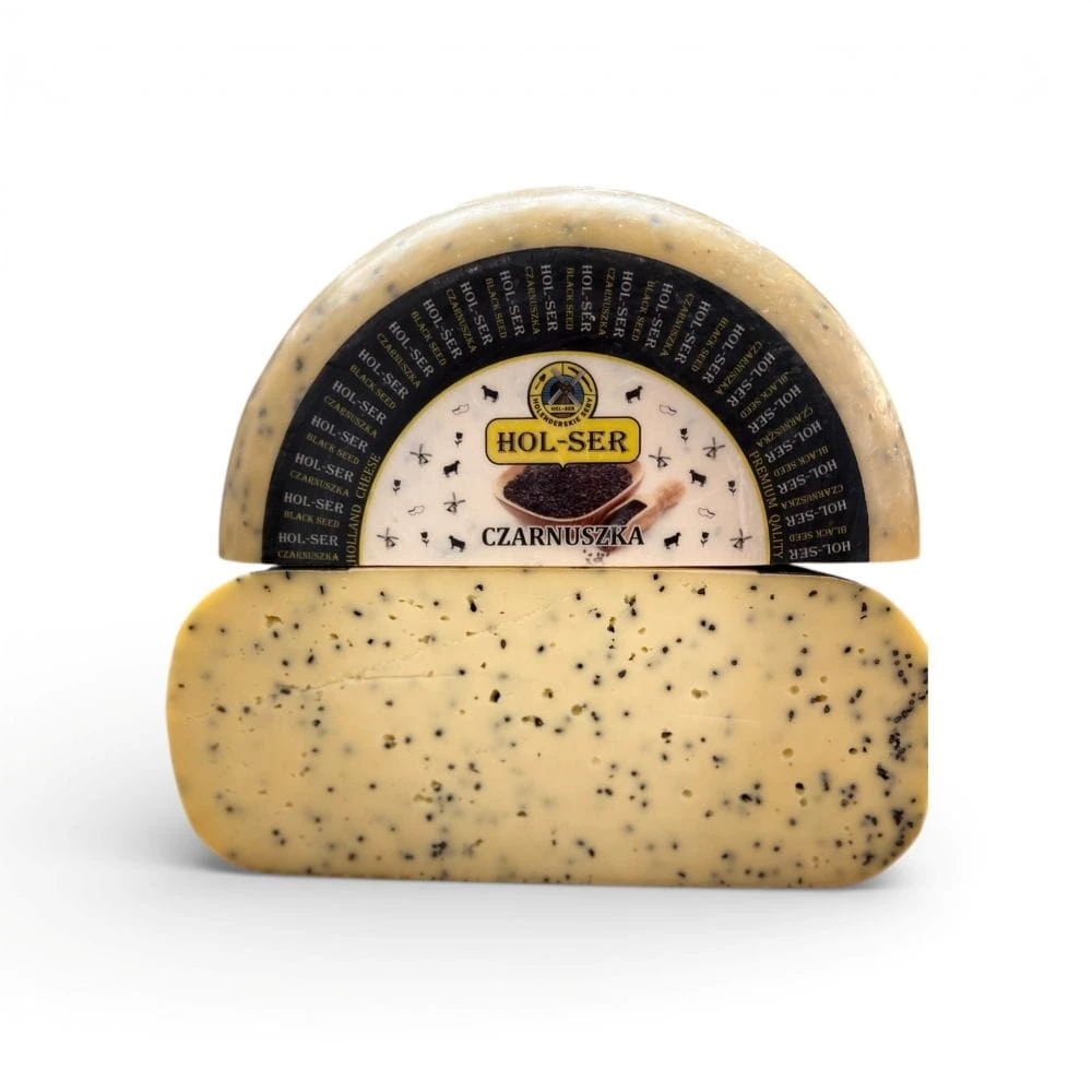 Gouda z czarnuszką to półtwardy, dojrzewający ser krowi, w którym klasyczna, kremowa baza goudy została połączona z ziarnami czarnuszki (Nigella sativa).