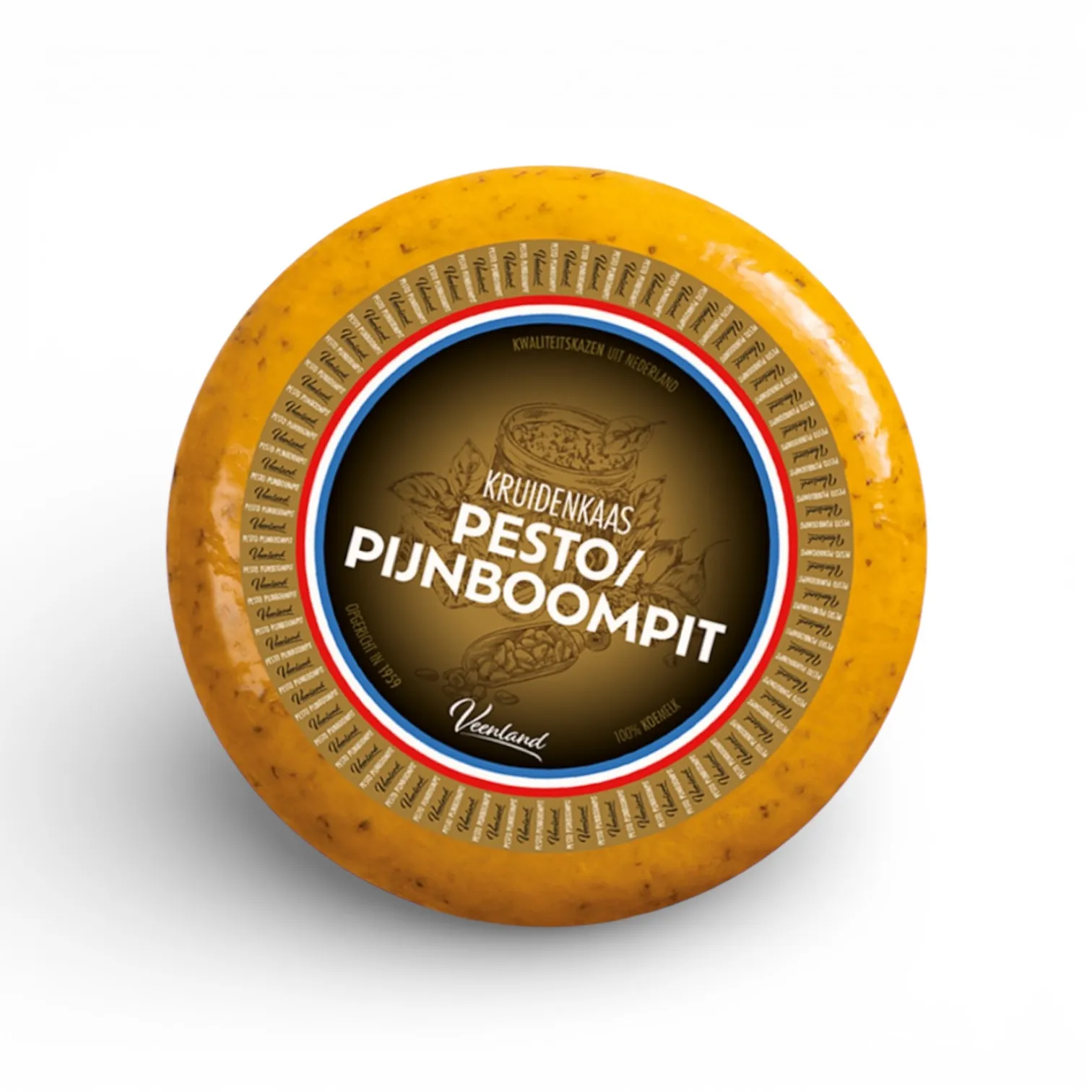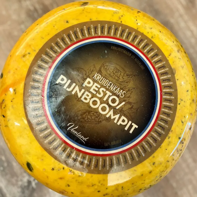 Gouda Pesto-Pijnboompit to dojrzewający ser krowi gouda należący do serów specjalnych z dodatkami.