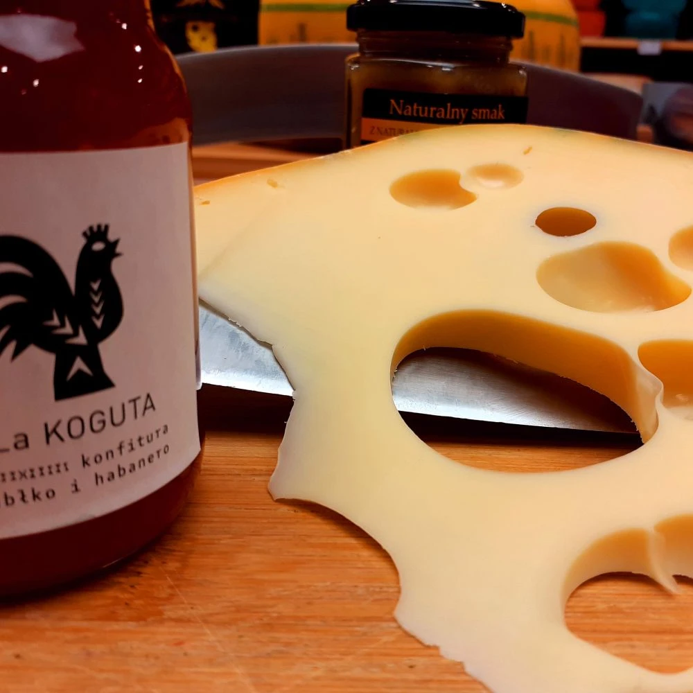 Do zamówienia ser krojony jest ręcznie z kręgu.