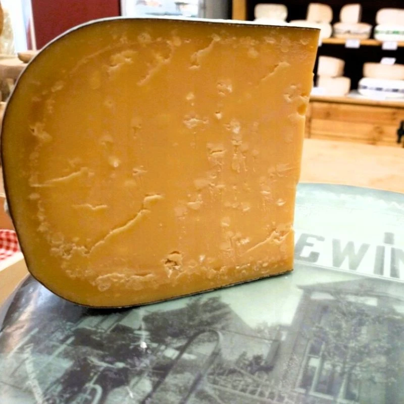 Po około 70 tygodniach dojrzewania ser zyskuje zwartą, lekko kruchą strukturę z wyraźnymi kryształkami oraz bogaty profil smakowy z nutami karmelu, orzechów, lekkiej pikantności i umami.