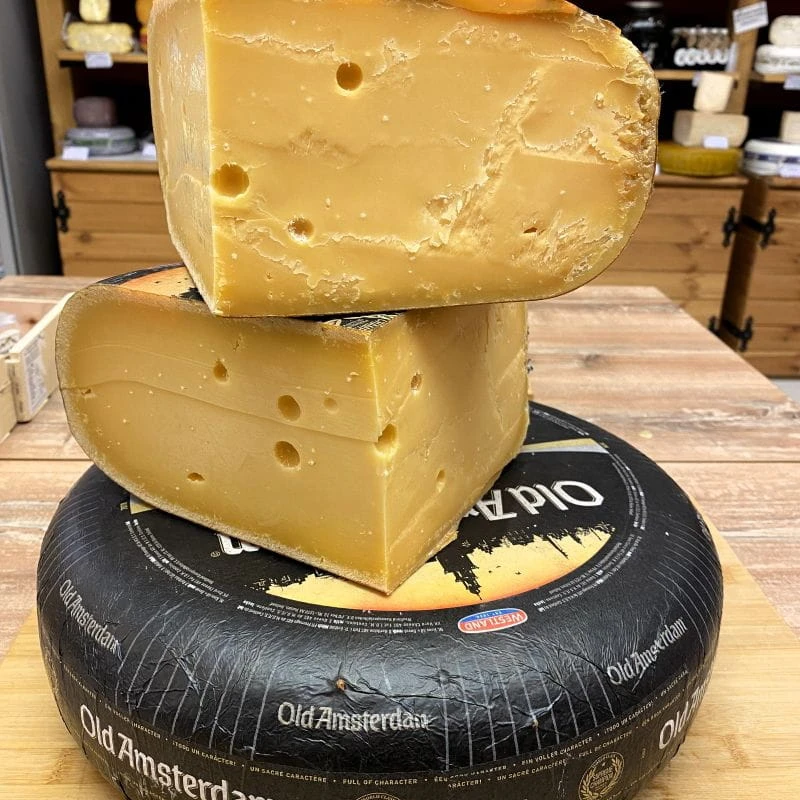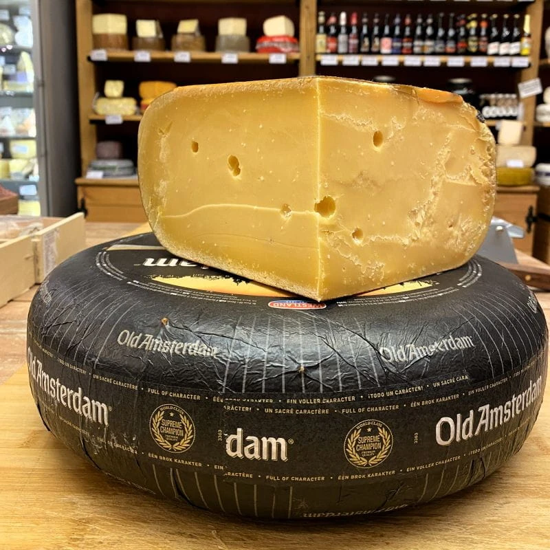 Old Amsterdam to intensywny, długodojrzewający ser holenderski o wyrazistym smaku i charakterystycznych kryształkach.