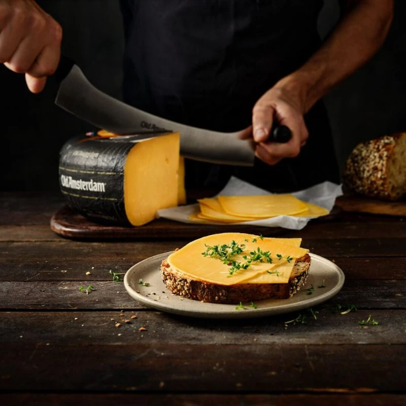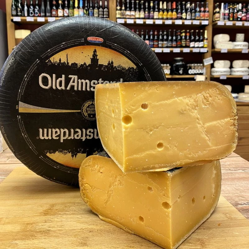 Old Amsterdam to kultowy holenderski ser dojrzewający, produkowany przez markę Old Amsterdam, która łączy tradycyjne rzemiosło z nowoczesną technologią dojrzewania.