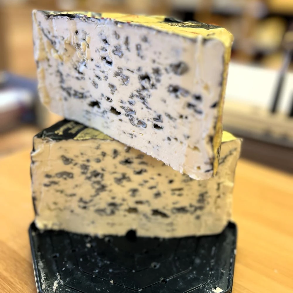 Pleśń rozwija się równomiernie i łagodnie, co daje intensywny, aromatyczny, ale nieagresywny profil smakowy — bardziej łagodny niż w wielu innych blue cheese, a jednocześnie wyrazisty i zrównoważony.