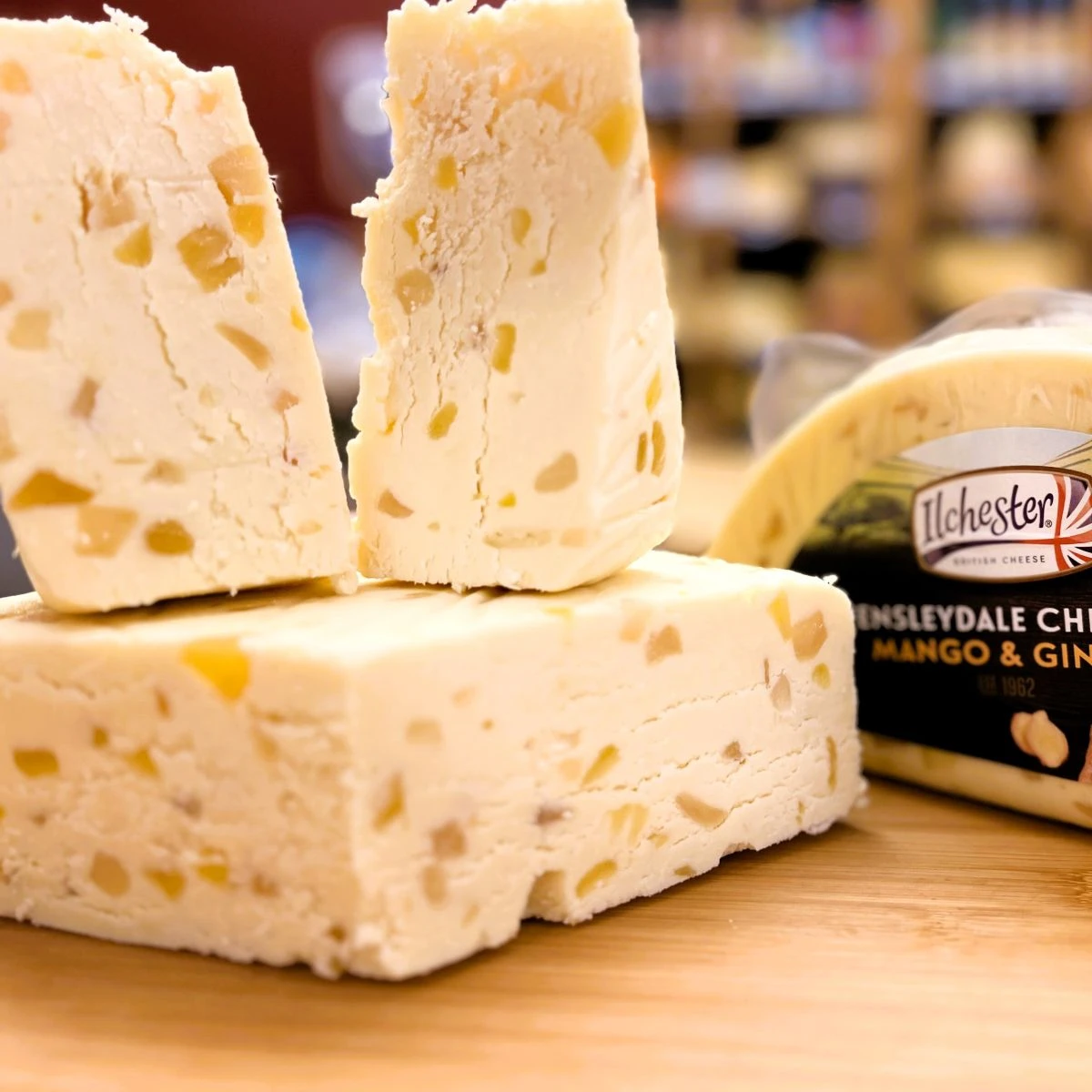 Tradycyjny angielski ser kruchy o łagodnym, mlecznym smaku, wzbogacony słodkim mango i lekko pikantnym imbirem. Wyrazisty, a jednocześnie bardzo przystępny.