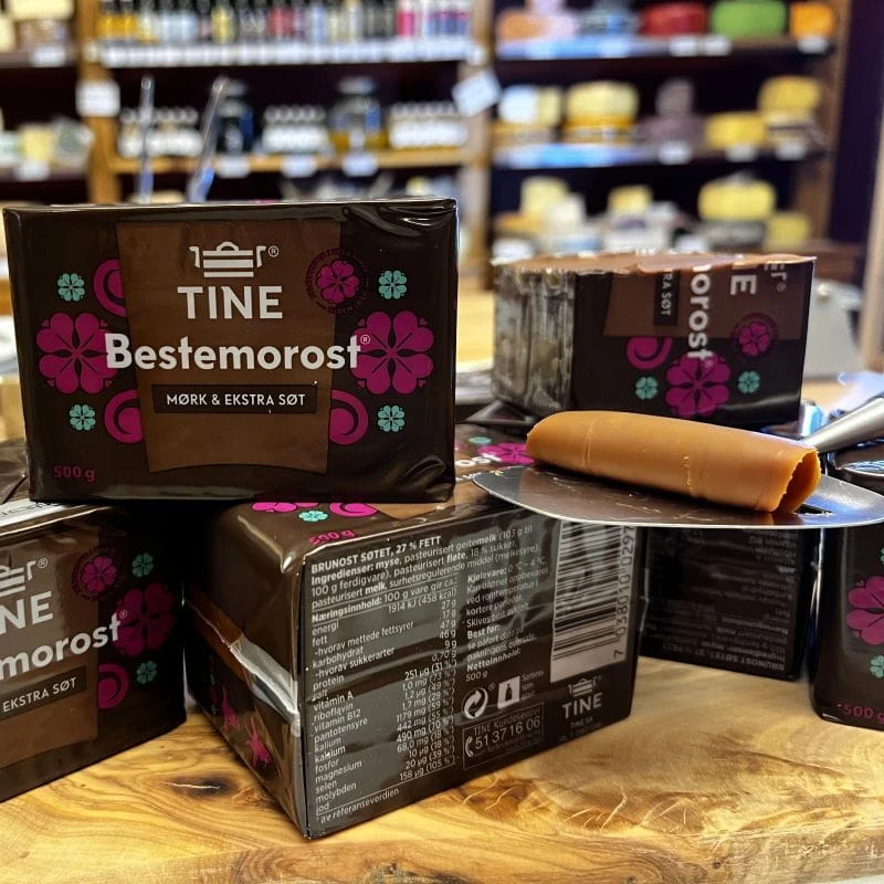 Bestemorost Tine to klasyczny norweski ser serwatkowy (brunost) inspirowany tradycyjną recepturą z regionu Gudbrandsdalen.