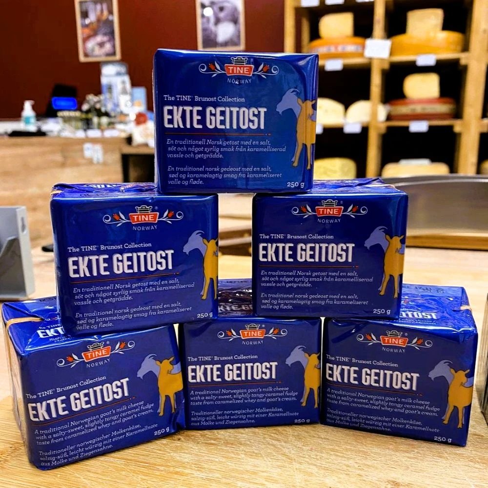 Ekte Geitost to autentyczny norweski brunost, który wyróżnia się intensywniejszym profilem smakowym niż brunosty z mleka krowiego.