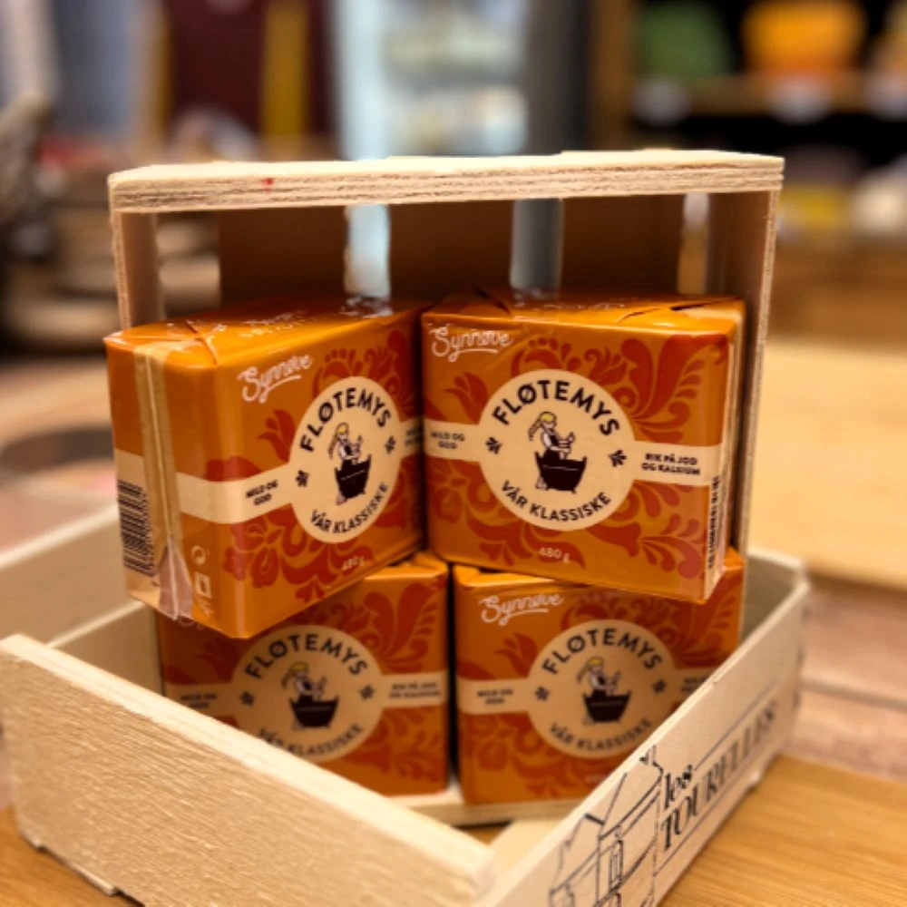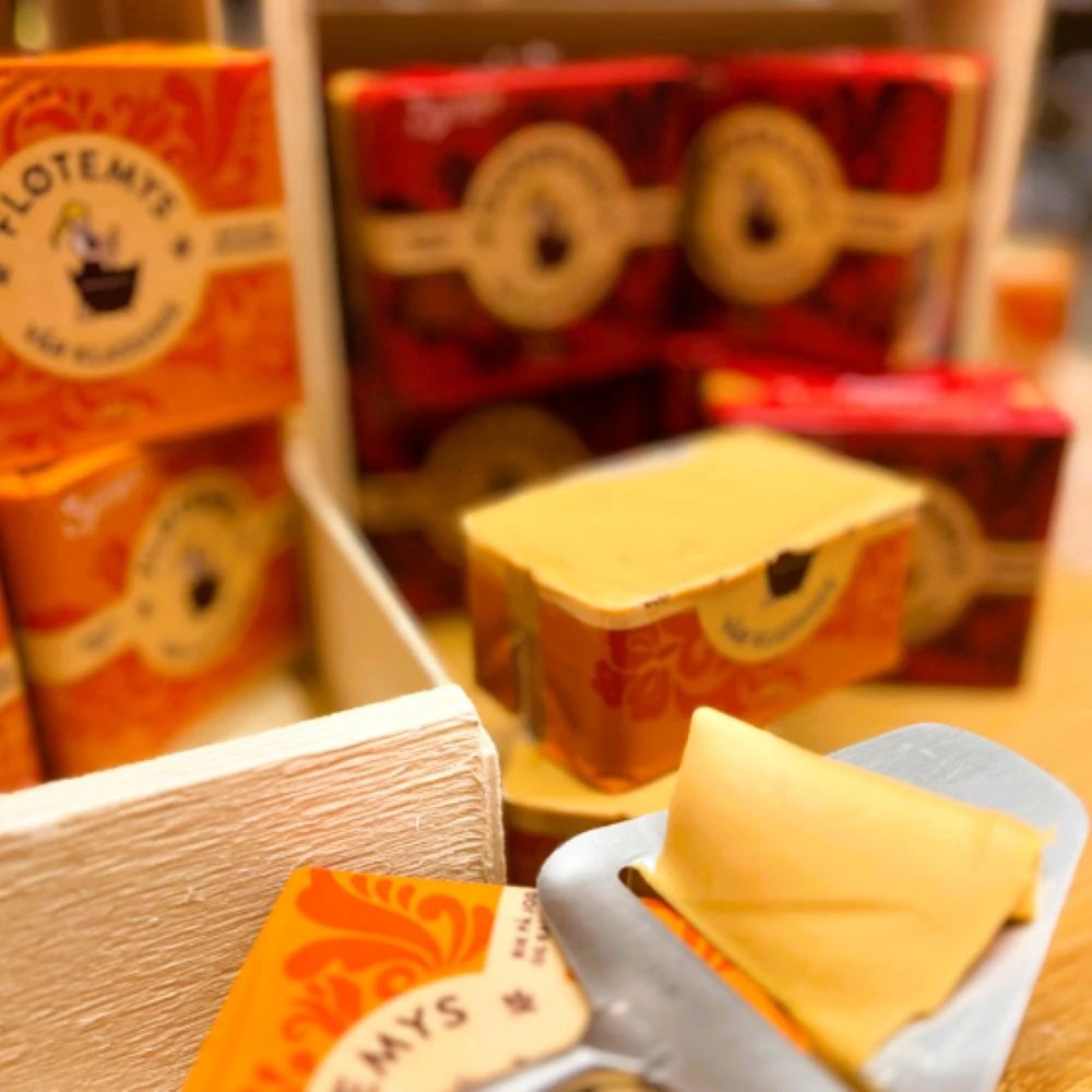 Fløtemys to jeden z najbardziej charakterystycznych norweskich serów karmelowych (brunost), produkowany przez Synnøve Finden w swojej fabryce w Alvdal (Norwegia) z tradycyjną metodą gotowania w żeliwnych kotłach – techniką, która nadaje mu jego kultowy, głęboki smak.