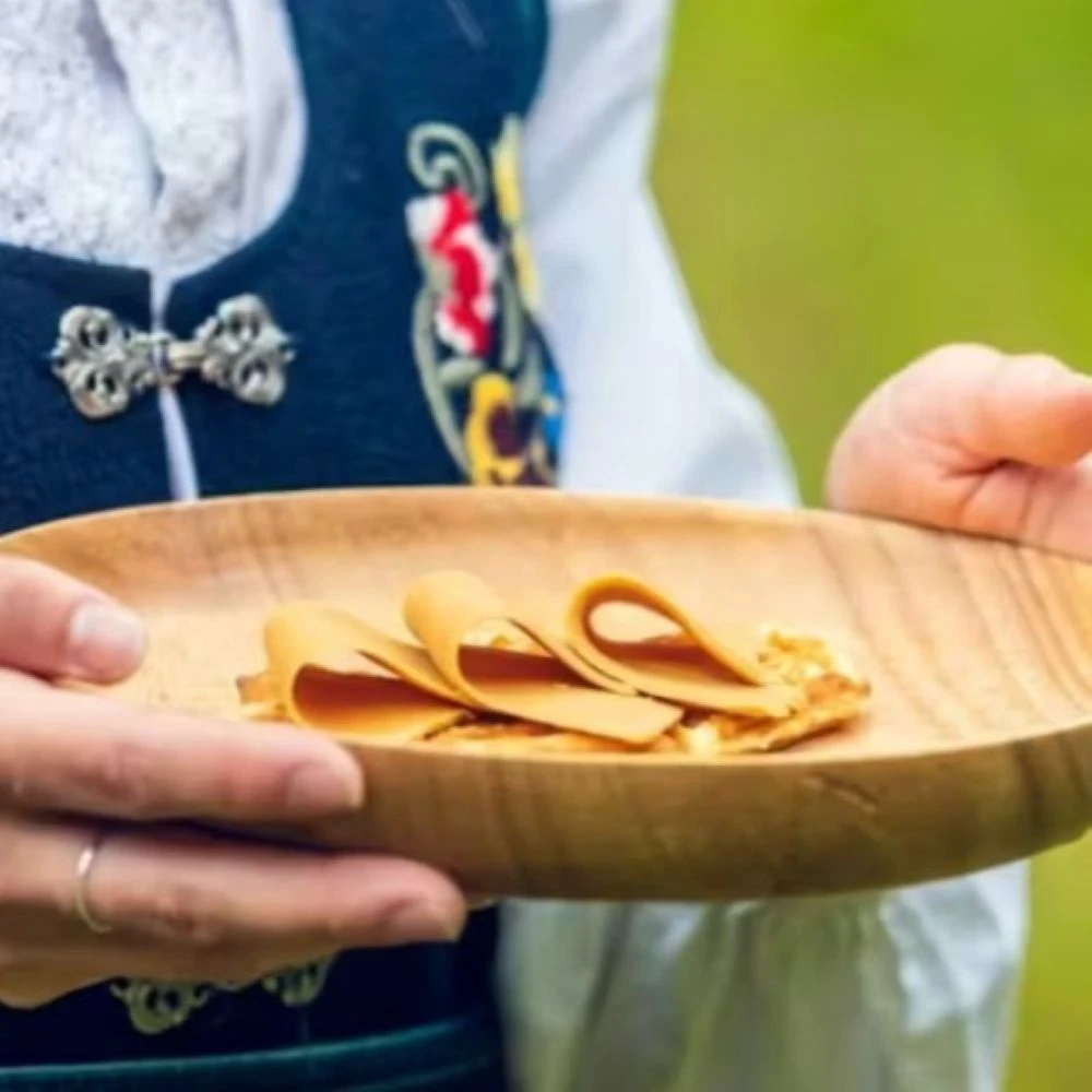 Gudbrand to klasyczny norweski brunost (ser karmelowy) z charakterystycznym, głębokim smakiem karmelizowanego mleka i kremową, zwartą konsystencją.