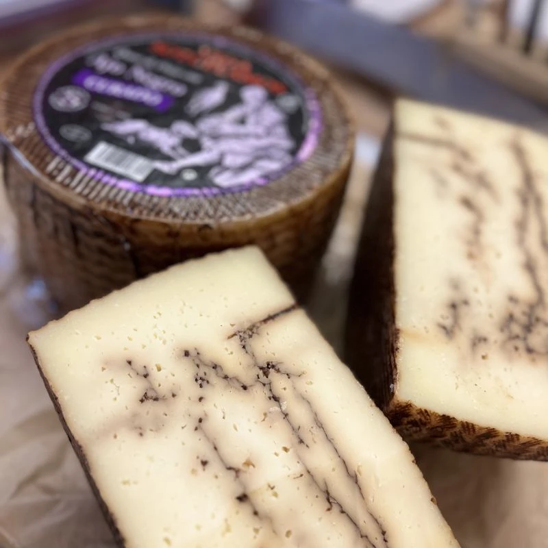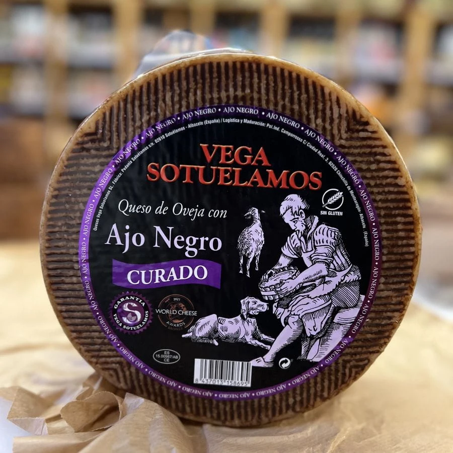 Hiszpański ser owczy Vega Sotuelamos z czarnym czosnkiem to dojrzewający ser o kremowym, lekko pikantnym charakterze, w którym naturalna słodycz czarnego czosnku łączy się z pełnym smakiem mleka owczego.