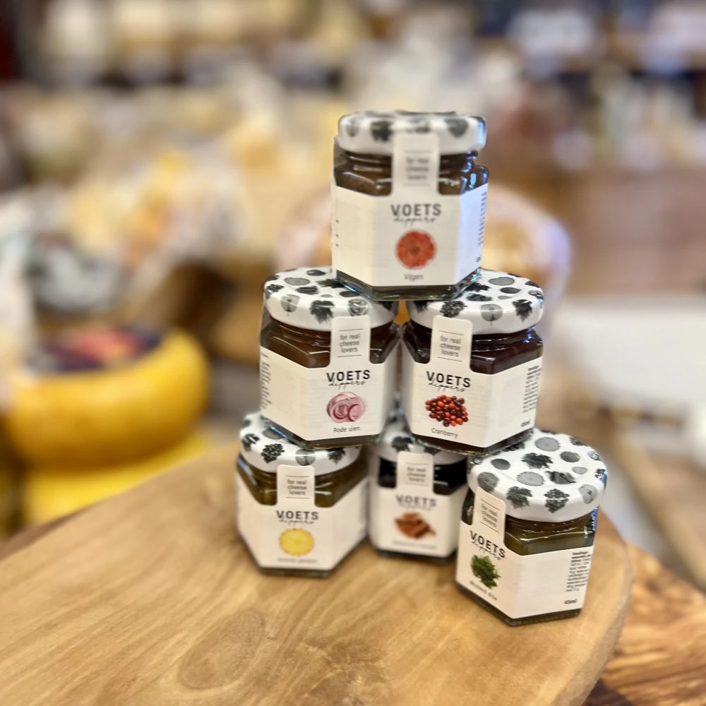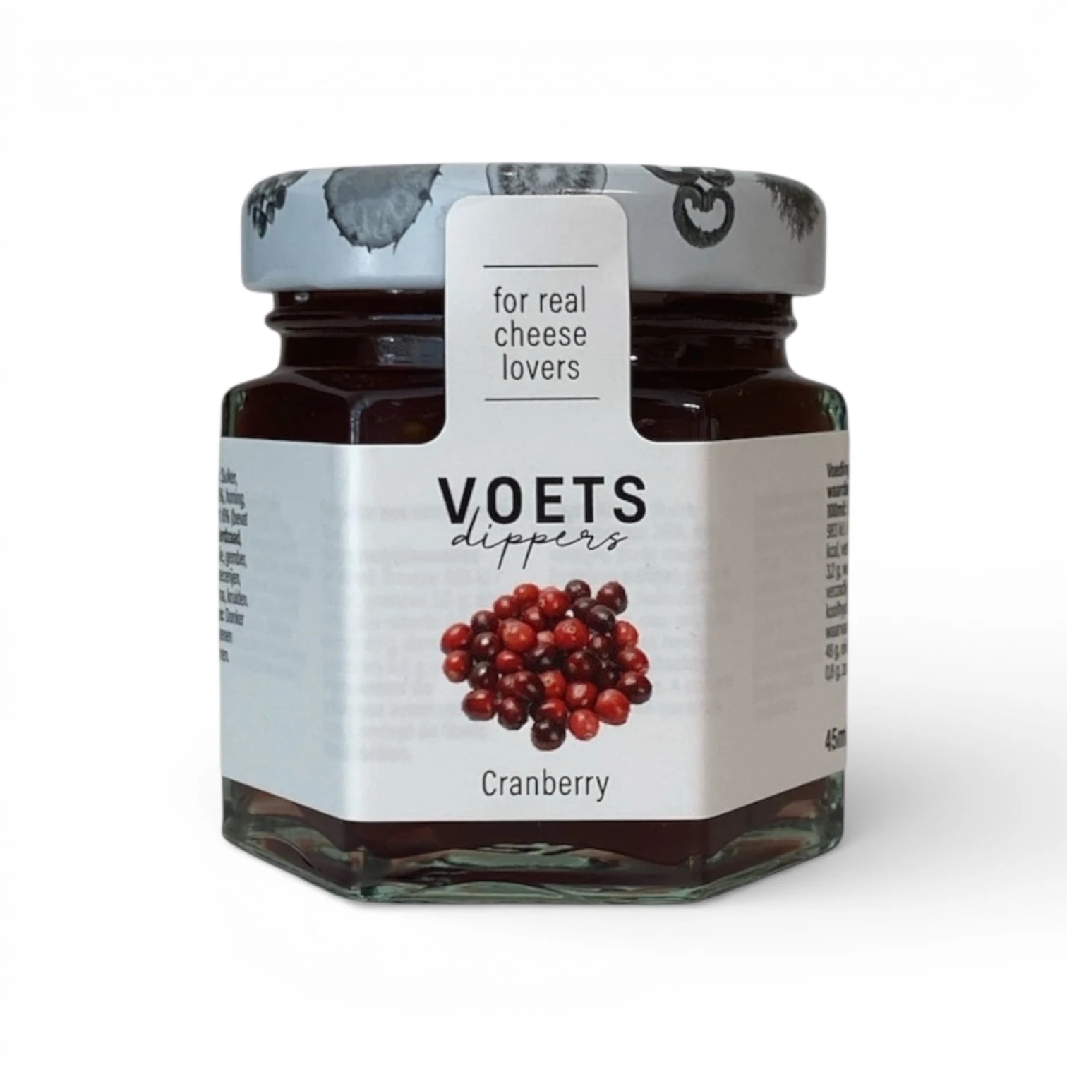 Mini sos Voets z żurawiną to intensywny, słodko-kwaśny dip na bazie żurawiny, miodu i czerwonego porto, z delikatną nutą musztardy i imbiru.